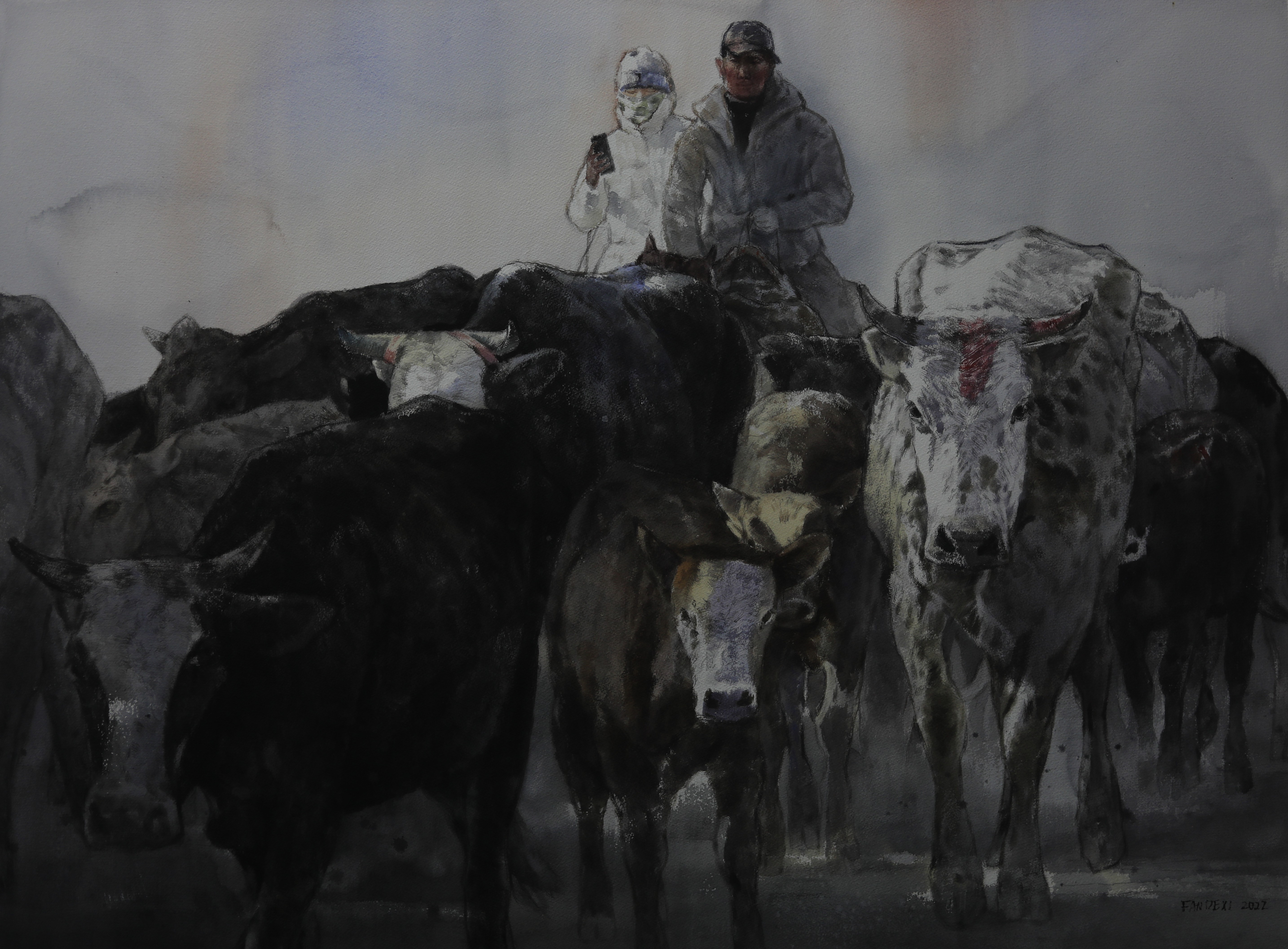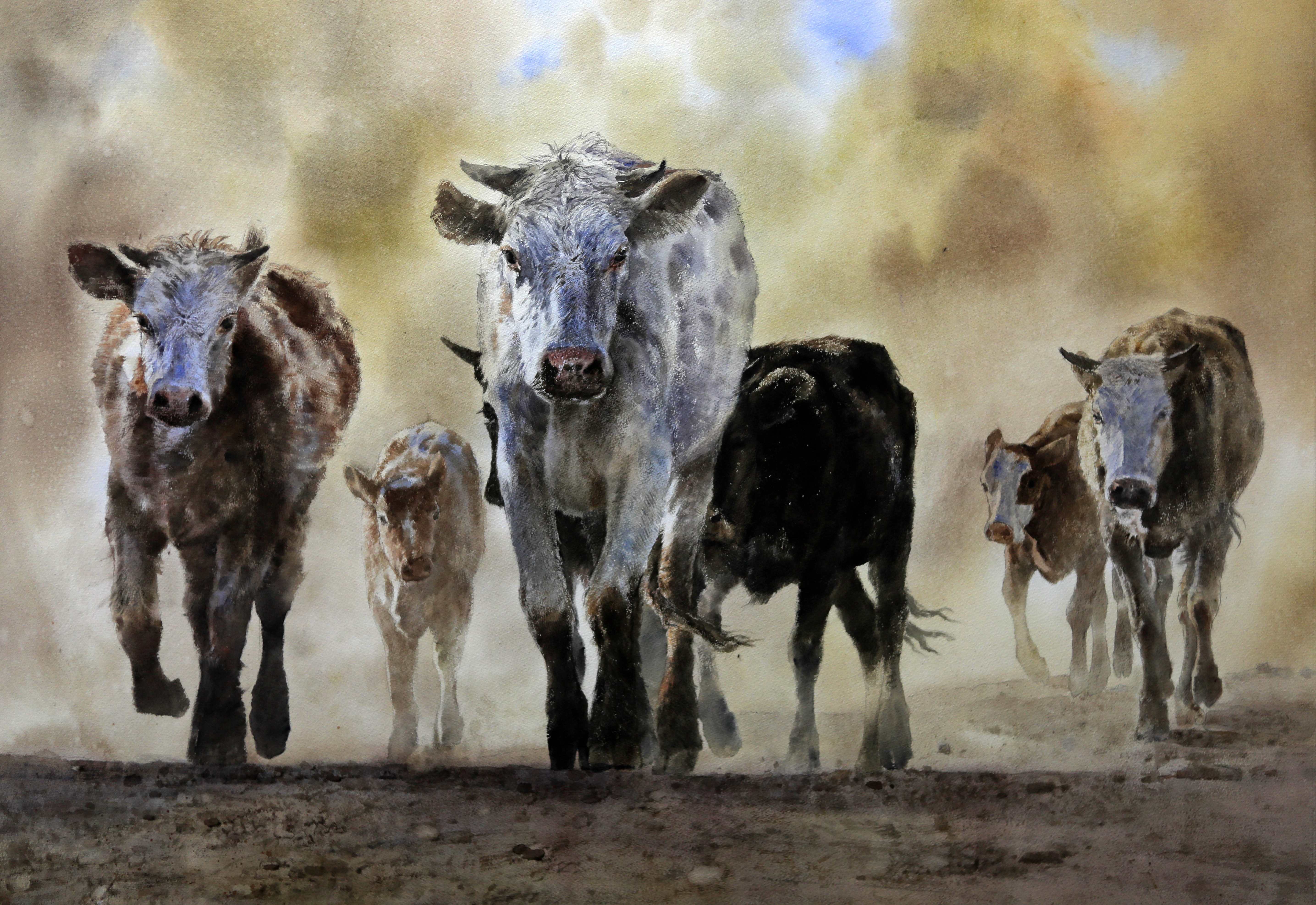 《牛市》 水彩画 113CM * 85CM