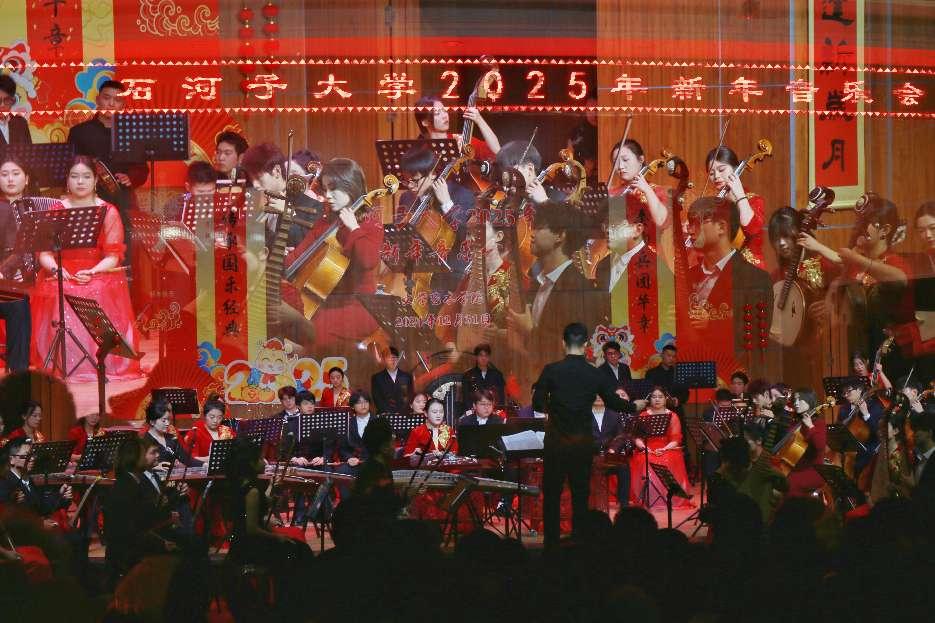 音乐会在《金蛇狂舞》中拉开序幕,乐团用音乐传递对大家新年的祝福,由赵季平创作的《庆典序曲》渲染了节日的欢腾气氛;一曲《彩云追月》,让听众们看到了一轮腾入云端的明月,银河般迷幻,余韵不绝。石宏老师深唱的新疆民歌《可爱的一朵玫瑰花》,仿佛让听众身临其境。陈腾飞老师作曲的《锦绣韶华》彰显出音乐与情感的巧妙配合,营造出宏大而壮丽的氛围。乐团演奏的一首首作品,让听众领略到不同民族的音乐艺术之美。精彩不停、美妙不断,精湛的技艺和饱满的情感触动了现场观众,为观众带来一场沉浸式的音乐之旅。
