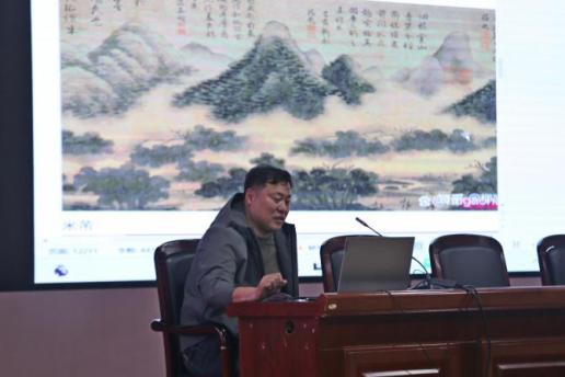 辽宁省铁岭市美术家协会副主席董学深以《浅谈素描在工笔人物画中的应用》为题,从传统技法与现代审美融合角度,深入解析素描在工笔人物画创作中的创新应用。他强调,援疆不仅是技术支援,更是文化根脉的共育,希望通过艺术交流,让两地青年共同探索传统文化的当代生命力。贾天浩则以《中国山水画发展简史及北方山水画创作分析》为题,梳理了从魏晋至明清的山水画脉络,分析北方山水的雄浑气韵,并结合辽宁与新疆自然风貌的对比,分享创作感悟。他指出,援疆是双向的文化对话,两地虽山川迥异,但艺术精神相通。