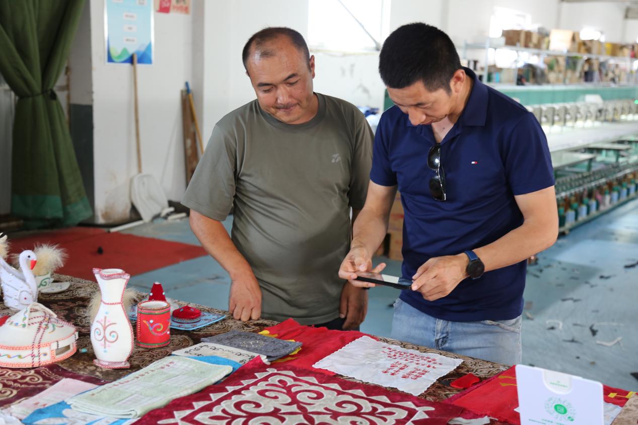 在第十二师,调研聚焦兵团级非遗赛龙舟及师市级非遗剪纸、哈萨克毡绣和布绣、阿肯弹唱等项目。在走马川河畔,团队详细了解了222团龙舟赛的发展历程,记录了“画龙点睛”“屈原游江”等仪式细节及无人机表演、汉唐文化街等创新元素。在剪纸传承人工作室,团队梳理了高彩霞“银发工作室”开创的关中风格剪纸技艺传承现状,以及肖云等后辈的学习与创作情况。此外,还走访了104团畜牧连,调研哈萨克毡绣和布绣的图案特征、生产销售模式,以及阿肯弹唱在定居生活中的形式演变。